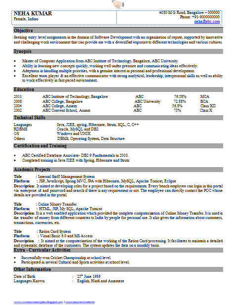Awesome One Page Resume Sample For Freshers | Best resume ...